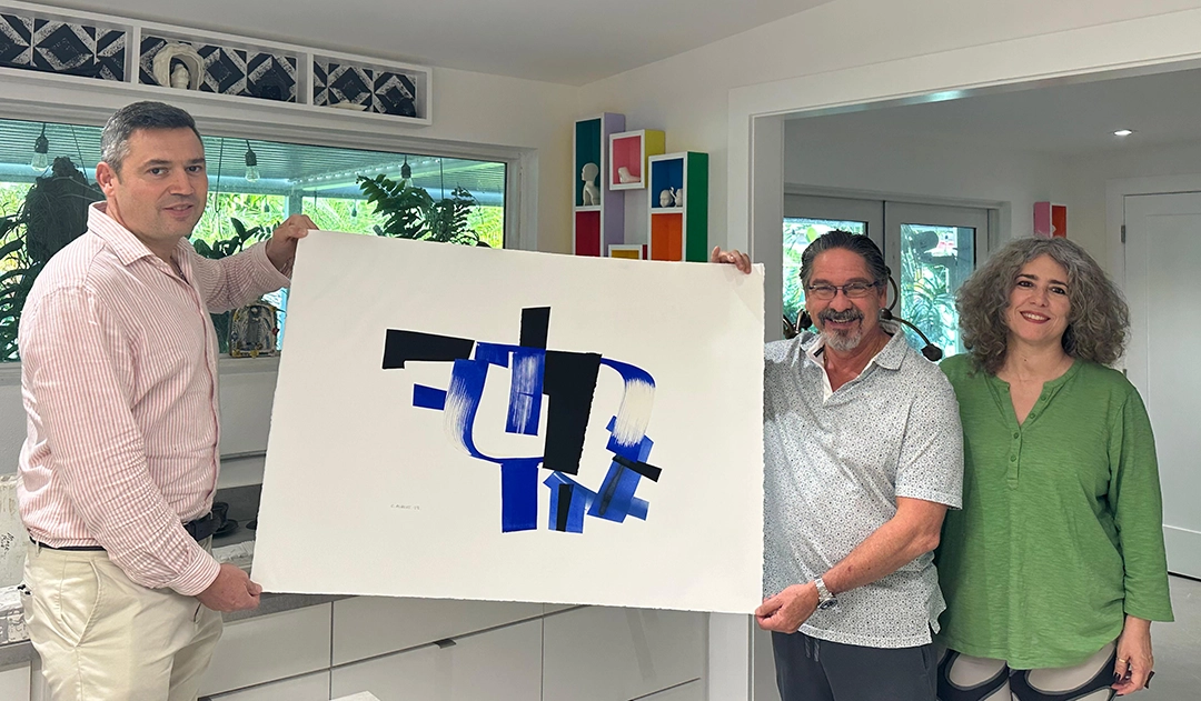 Among Spanish artists, few maintain a closer relationship with the Museum of Contemporary Art of the Americas than the distinguished sculptor Carlos Albert. The artist took part in this year’s Art Miami fair, exhibiting with Oliver Cole Gallery (double booth AM130 and AM131), an edition that concluded yesterday, Sunday, December 7. As is customary during his visits to Miami, Carlos stopped by the museum offices to meet with its leadership and to refine details of an upcoming collaboration—currently under active development—with aligned institutions in Spain. Several of his works are on loan to the Rodriguez Collection, from which a selection has been featured in both solo and group exhibitions over the past two years.