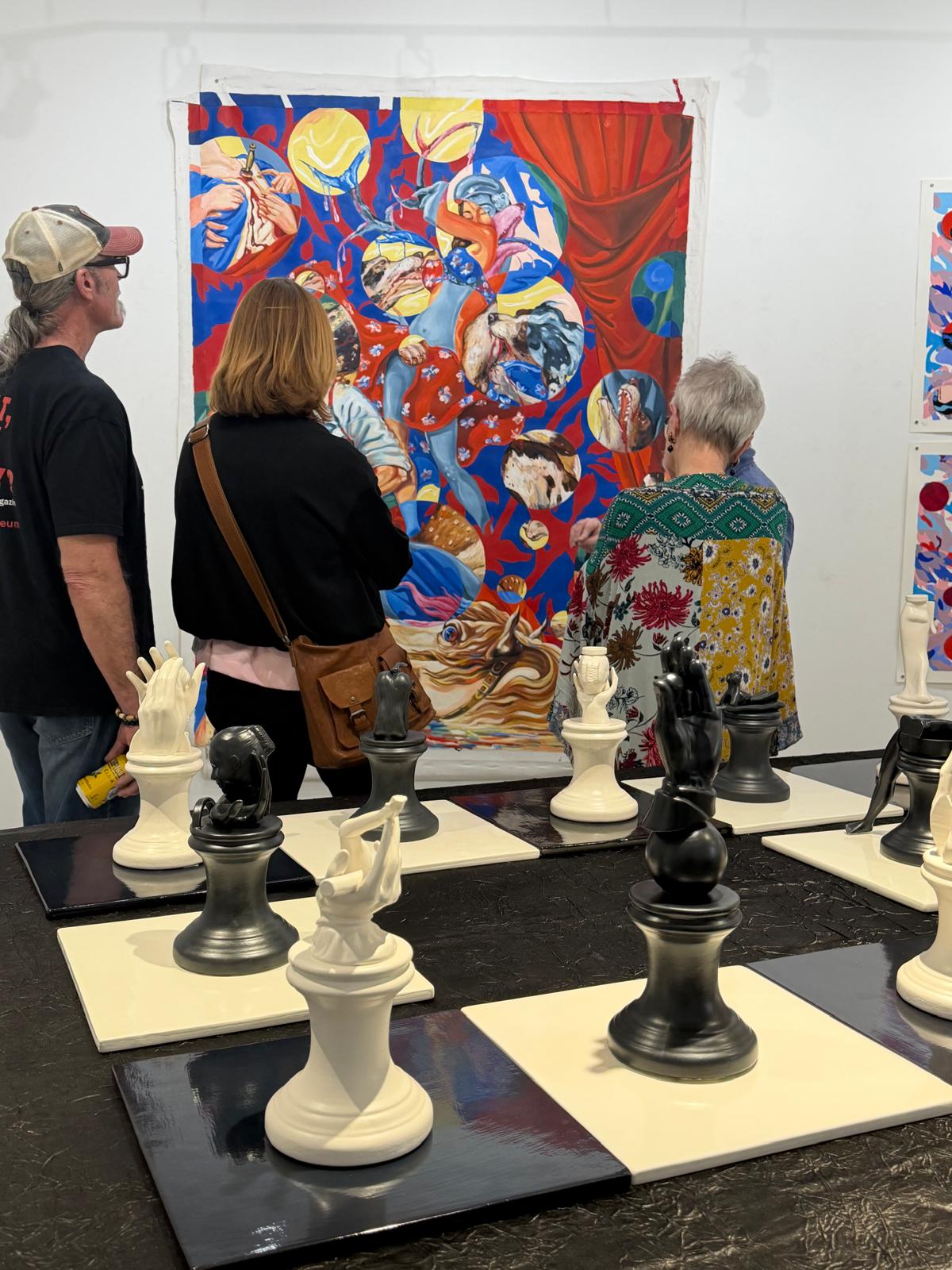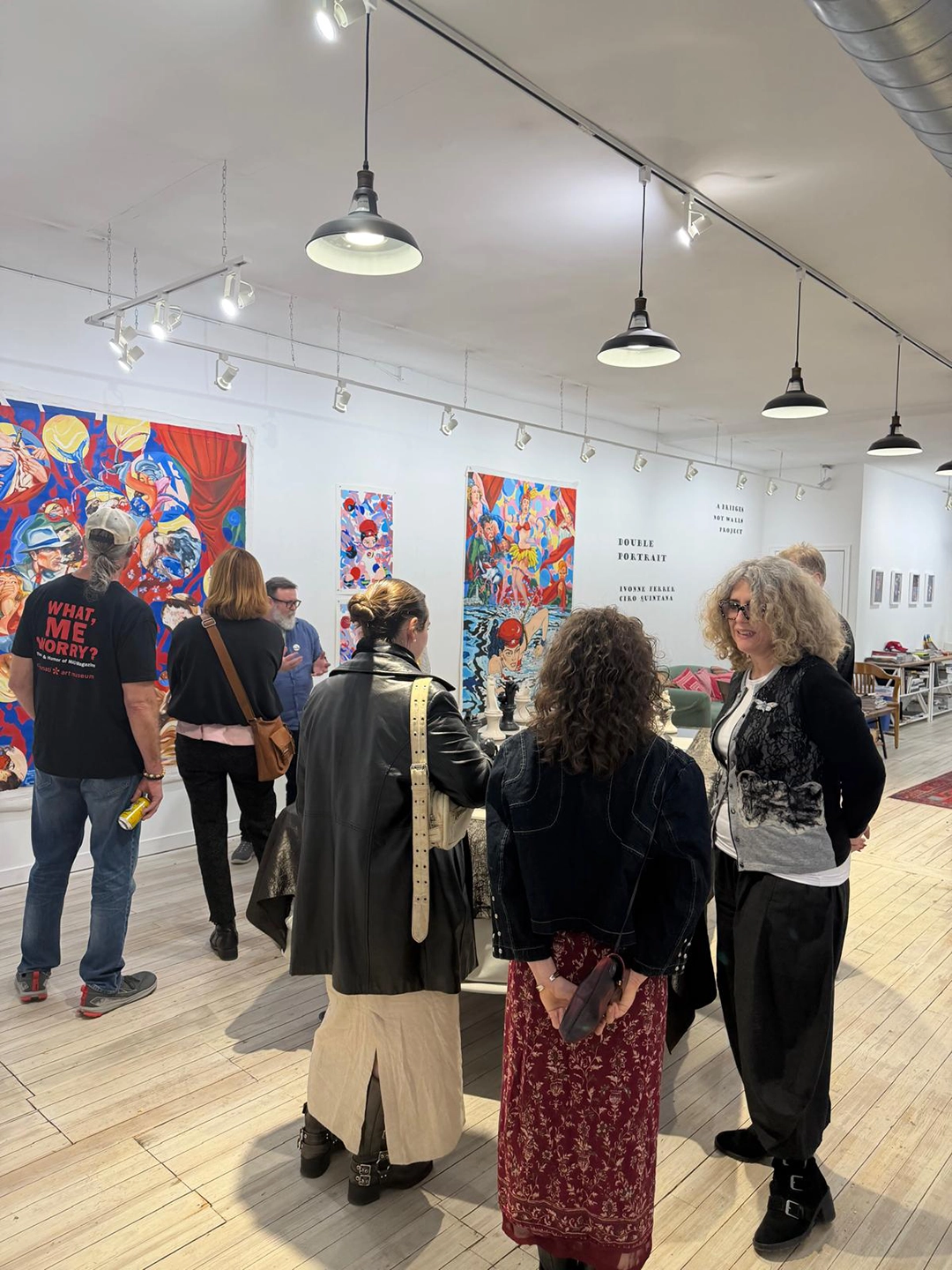 The exhibition Double Portrait, presented at The Annex Gallery, ran from March 27 through Saturday, April 4, 2026. Its opening, held as part of the well-attended Final Friday at the Pendleton Art Center, drew close to one hundred visitors between 5:00 and 9:00 p.m. The audience showed a marked interest in the political undercurrents present in the works of Ciro Quintana, as well as in the reflections on identity and gender articulated through the ceramic selection of Ivonne Ferrer.