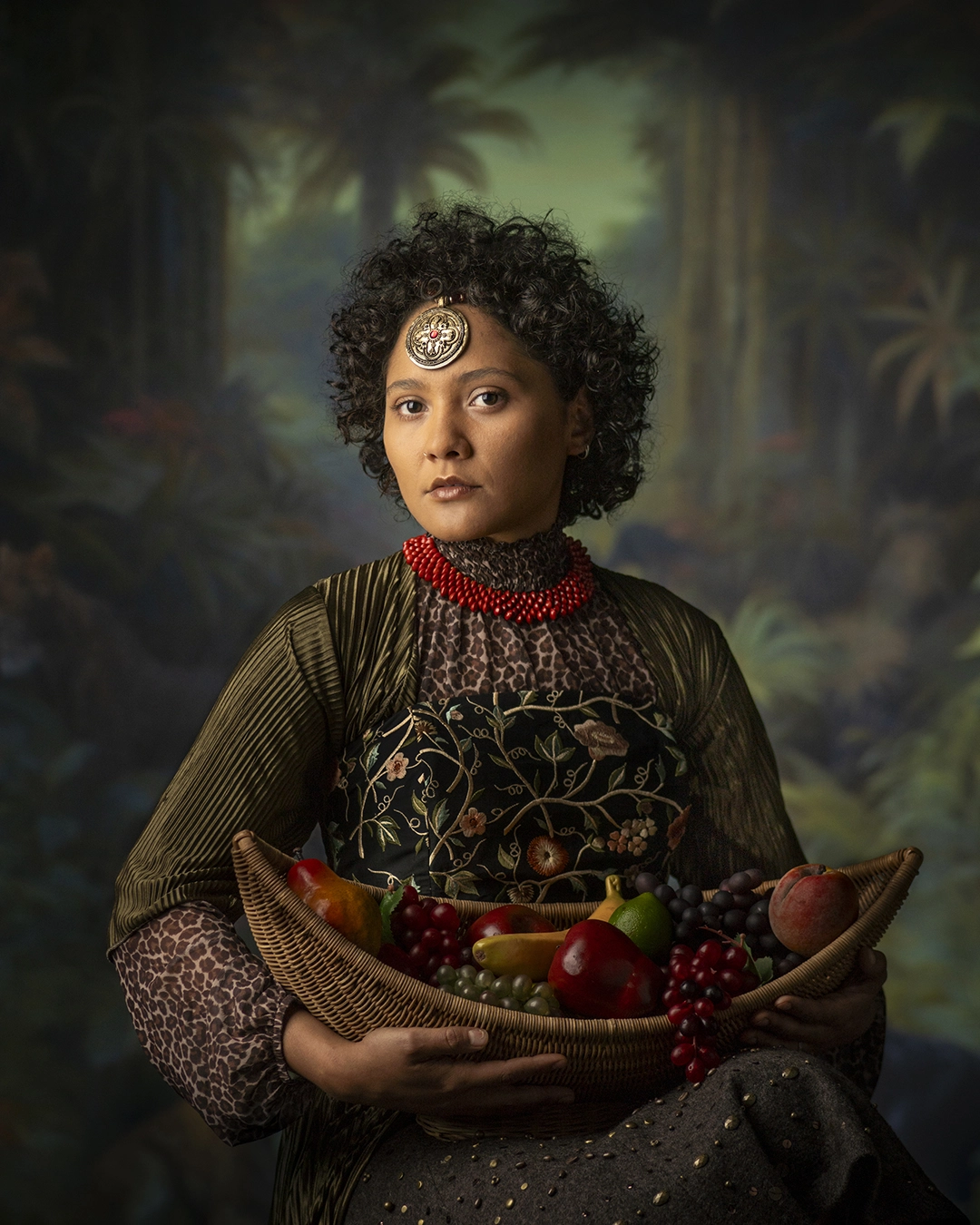 Portraiture is her primary tool. Her images reveal a precise awareness of Western tradition, visible in the organization of the figure, in the relationship between subject and background, and in the use of costume as a device of symbolic construction. References to Frida Kahlo or Diego Velázquez are not merely cited but embedded within the language of the work itself. Each photograph inscribes itself within that lineage and rearticulates it from a present shaped by ongoing debates around identity, representation, and belonging.