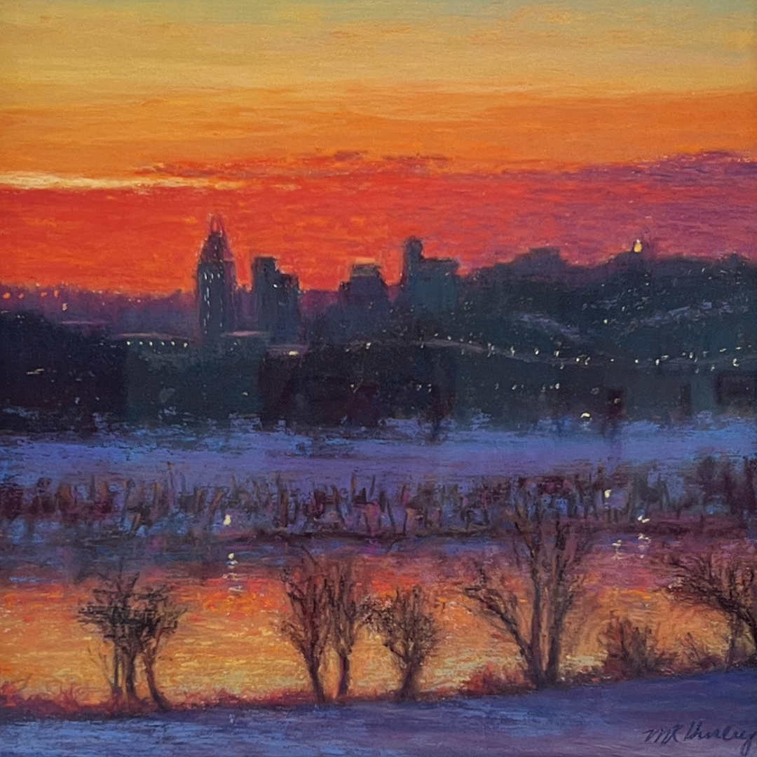 At the center of the exhibition stands M. Katherine “Kay” Winterich Hurley, an artist whose life and work have been deeply intertwined with the artistic life of Cincinnati for decades. Born into a family immersed in liturgical arts, Hurley developed an early and lasting relationship with the visual world. Her formal education at Mount St. Joseph University, combined with the influence of mentors such as John Nartker, Sister Augusta, and Connie McClure, laid the foundation for a career defined by dedication, curiosity, and a profound sensitivity to color and landscape.